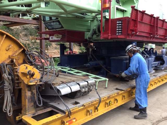 現地作業員さんとコミュニケーションを取りながら積み込み
